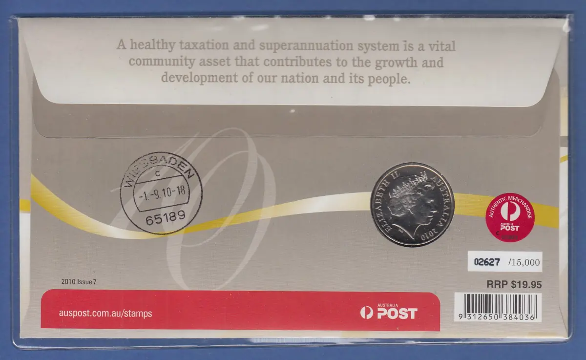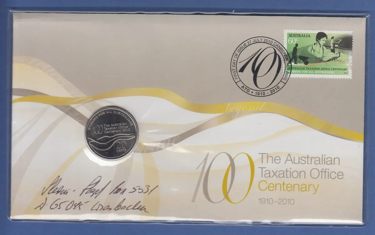 Australien 2010 Numisbrief mit 20C-Münze TAXATION OFFICE.