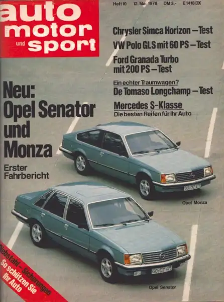 Opel Senator / Monza De Tomaso Longchamp Citroen Dyane 6 Mazda RX-7 Chrysler Simca Horizon GL Ford Granada 2.8 GLS Turbo VW Polo GLS Mit Gebrauchsspuren