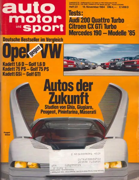 Opel Kadett / VW Golf Mercedes-Benz 190 Daihatsu Wildcat Wagon GL Citroen Visa 17 RD VW Oettinger 6 Zylinder Boxermotoren Audi 200 Quattro Citroen CX 25 Gti Turbo Opel Senator Comprex Diesel Peugeot 205 Turbo 16 Mit Gebrauchsspuren