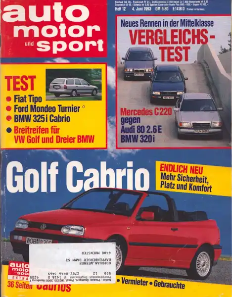 Fiat Tipo 1.8i.e. GT Audi 80 2.6E / BMW 320i / Mercedes-Benz C 220 Ford Mondeo 1.8 GLX Turnier Nissan Terrano II BMW 325i Cabrio Peugeot 605 Svti Jeep Cherokee 2.5 Jamboree Daihatsu Applause Mit Gebrauchsspuren