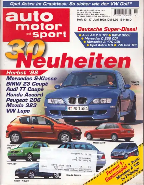 Mercedes-Benz A 170 CDI Opel Astra DI 16 V / VW Golf TDI Audi A 4 2.5 TDI / BMW 320d Mercedes-Benz C 220 CDI Toyota Landcruiser 100 V 8 Citroen Berlingo / Renault Kangoo Peugeot 206 Fiat Seicento SX / Hyundai Atos GLS Volvo V 70 Cross Country Mit Gebrauchsspuren