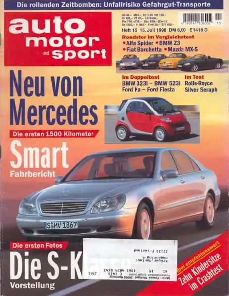 BMW 323i / 523i Audi V 6 TDI im A 4 6 8 Alfa Romeo Spider 1.8 TS / BMW Z 3 1.9 / Fiat Barchetta 1.8 16 V Limited Edition / Ford Ka Rolls-Royce Silver Seraph Smart Mit Gebrauchsspuren