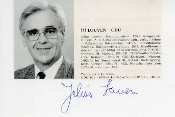 Autogramm Julius Louven, Portrait, CDU, Abgeordneter Kreis Viersen
