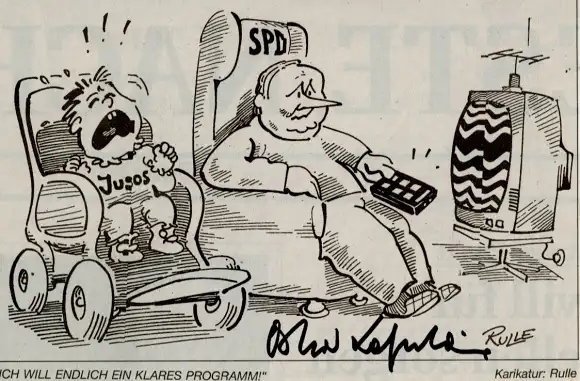 Autogramm Oskar Lafontaine, Ministerpräsident, Karikatur Rulle, SPD, Jusos