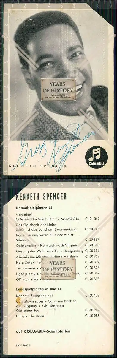Autogramm Portrait Sänger Kenneth Spencer Portrait Electrola Die Welt ist rund Karte beschädigt M2024-07-15-016Autogramm Portrait Sänger Kenneth Spencer Portrait Electrola Die Welt ist rund Karte beschädigt