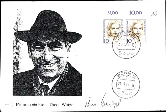 Autogramm Theo Waigel, Finanzminister, Portrait, 1993
