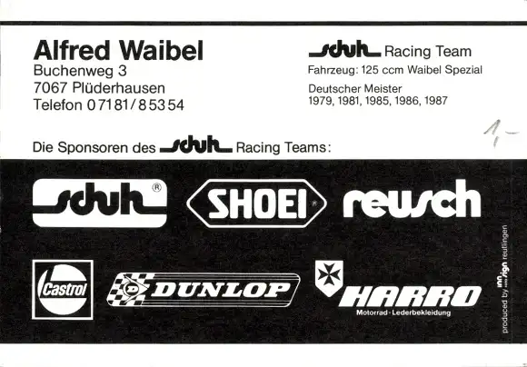 Autogrammkarte Alfred Waibel, Motorradrennfahrer