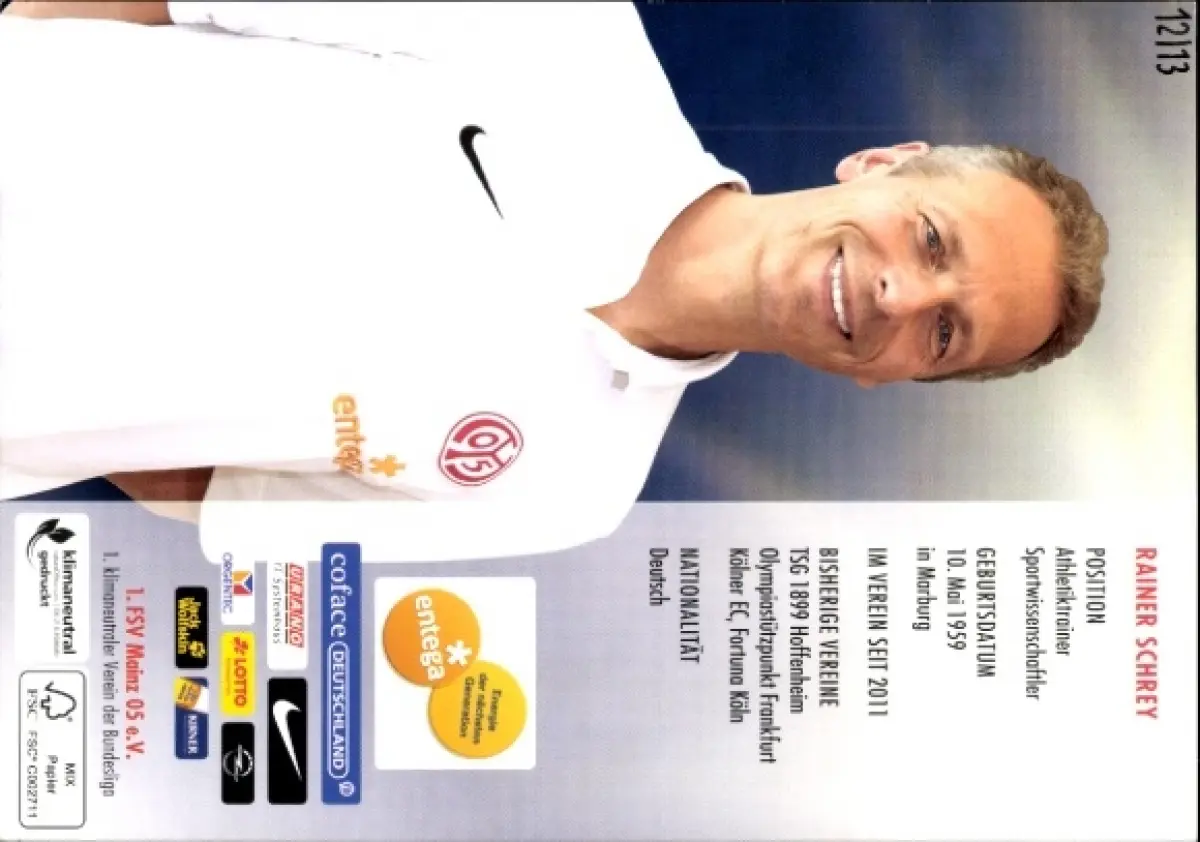 Autogrammkarte Athletiktrainer Rainer Schrey, 1. FSV Mainz 05, Autogramm