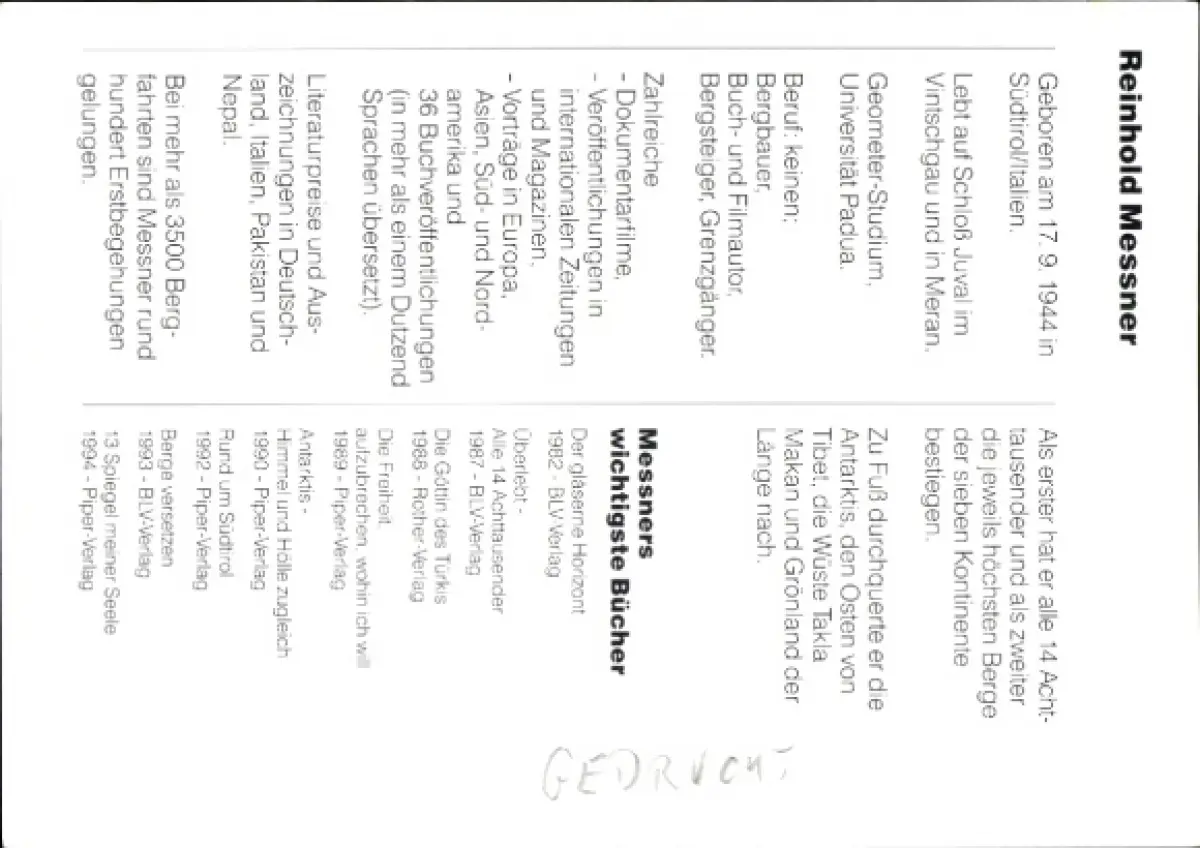 Autogrammkarte Bergsteiger Reinhold Messner, Autogramm