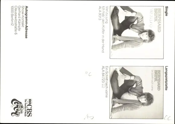 Autogrammkarte Bernhard Brink, Portrait, Autogramm