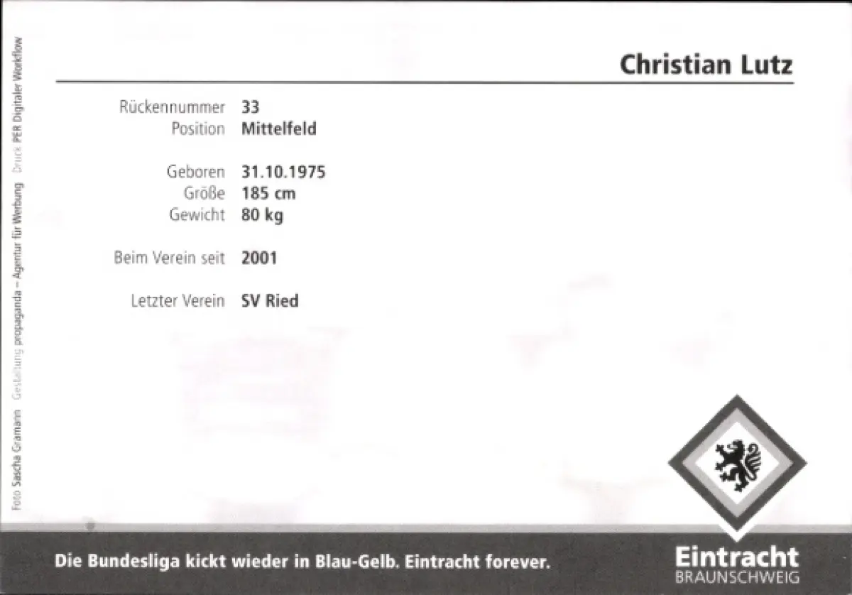 Autogrammkarte Christian Lutz, Eintracht Braunschweig, Autogramm