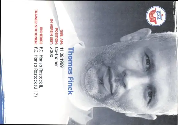 Autogrammkarte Co Trainer Thomas Finck, FC Hansa Rostock, Autogramm