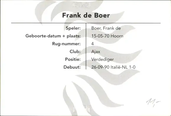 Autogrammkarte Frank de Boer, Fußball, Ajax Amsterdam, Maskottchen, Autogramm