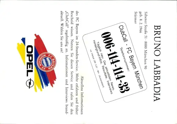 Autogrammkarte Fußball, Bruno Labbadia, Bayern München, Autogramm