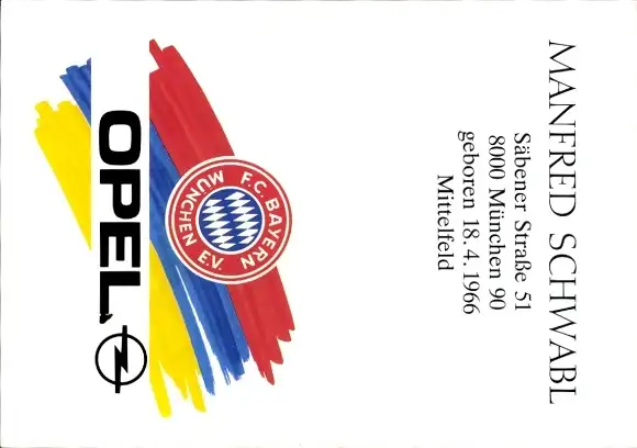 Autogrammkarte Fußball, Manfred Schwabl, Bayern München, Autogramm