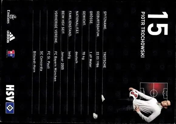 Autogrammkarte Fußball, Piotr Trochowski, Hamburger SV, Autogramm