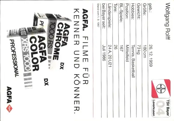 Autogrammkarte Fußball, Wolfgang Rolff, Bayer Leverkusen, Autogramm
