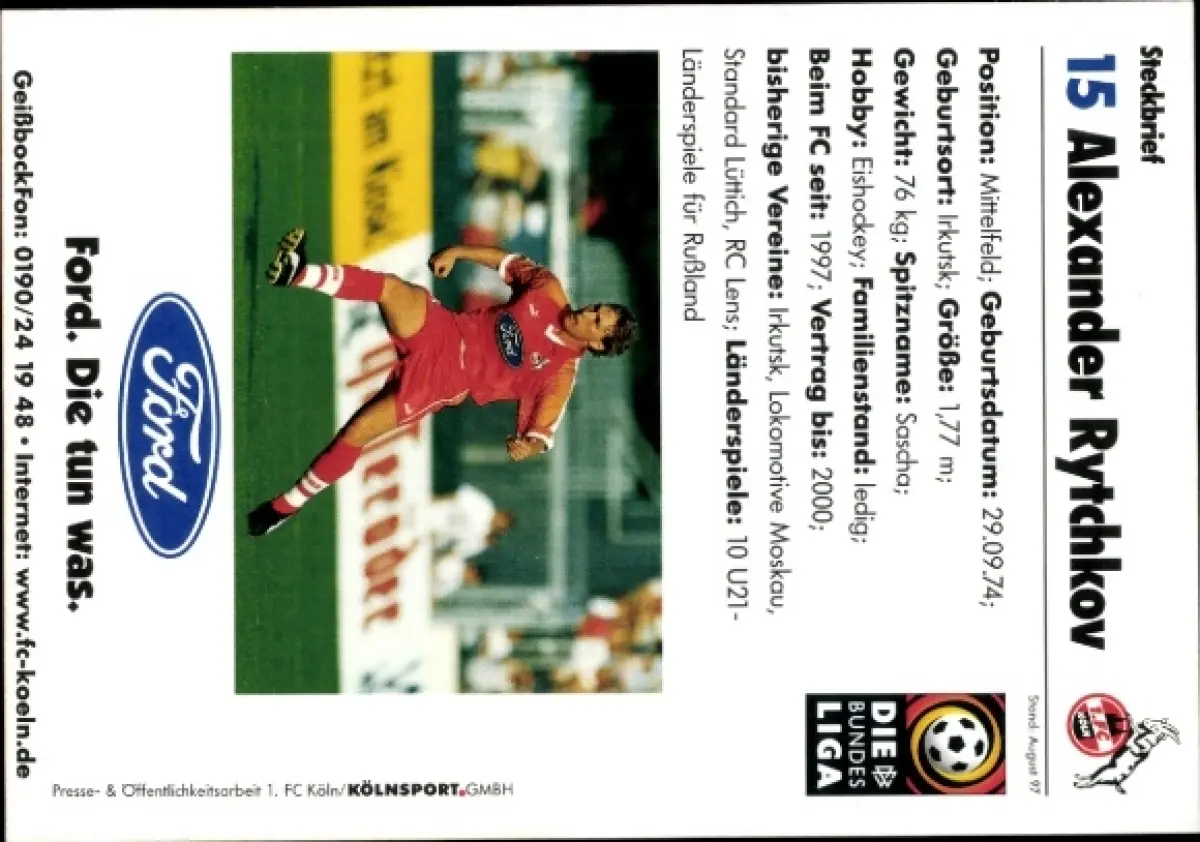 Autogrammkarte Fußballer Alexander Rytchkov, 1. FC Köln