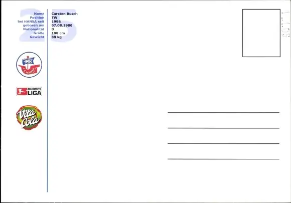 Autogrammkarte Fußballer Carsten Busch, FC Hansa Rostock, Autogramm