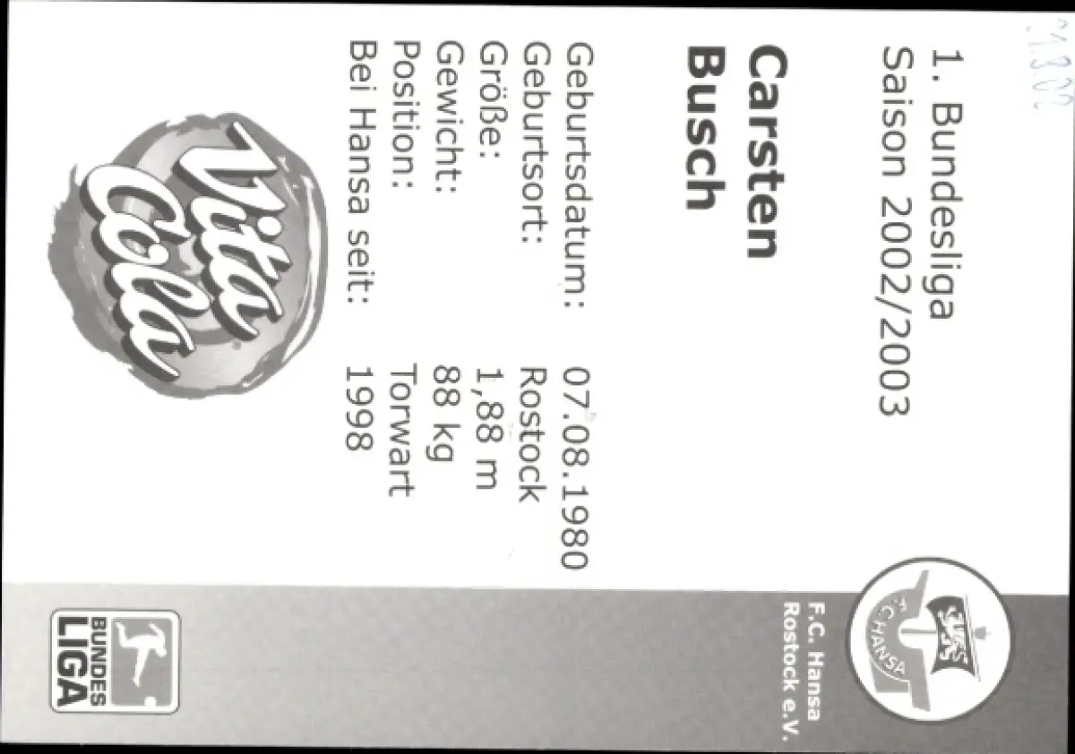 Autogrammkarte Fußballer Carsten Busch, FC Hansa Rostock, Autogramm