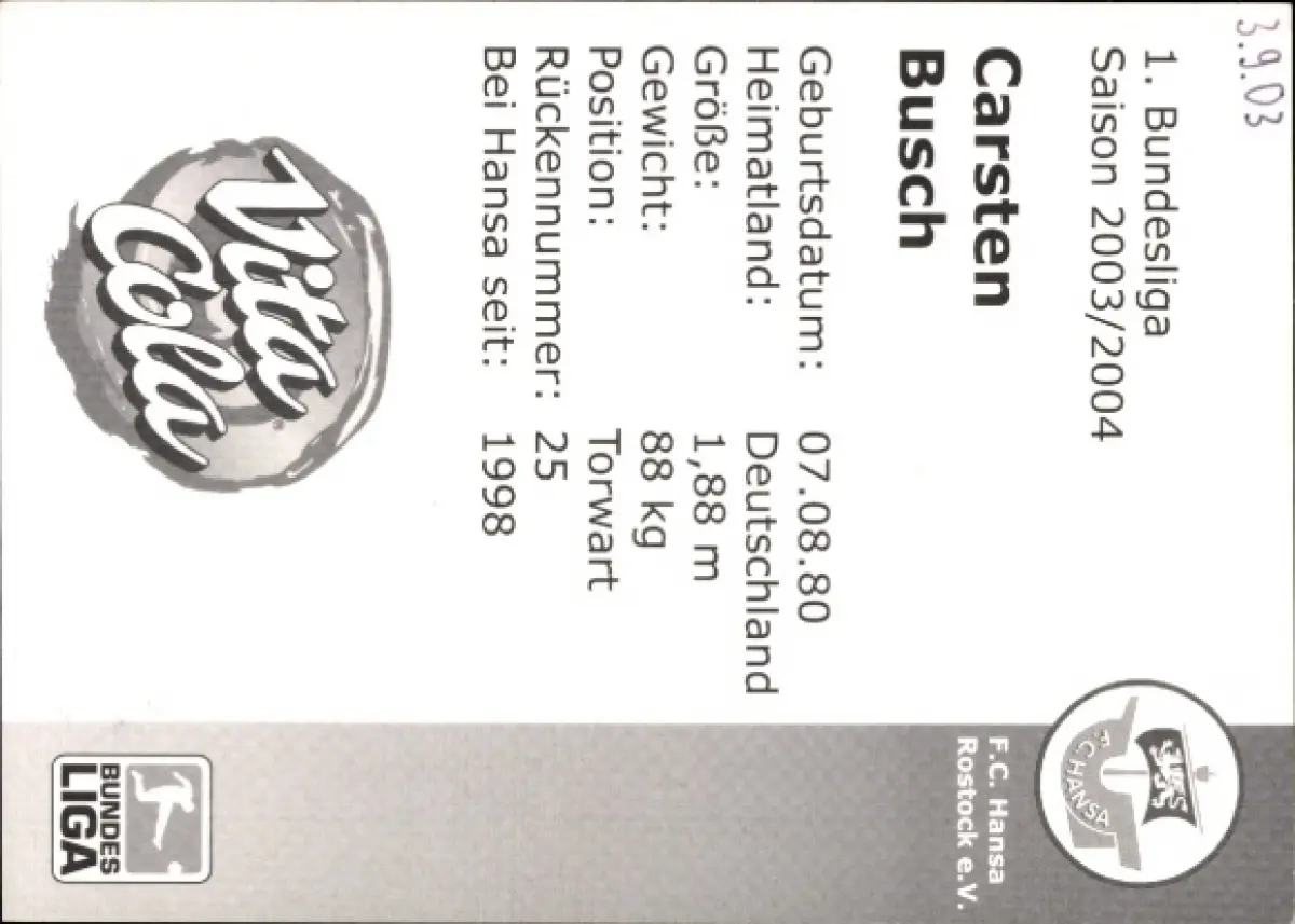 Autogrammkarte Fußballer Carsten Busch, FC Hansa Rostock, Autogramm