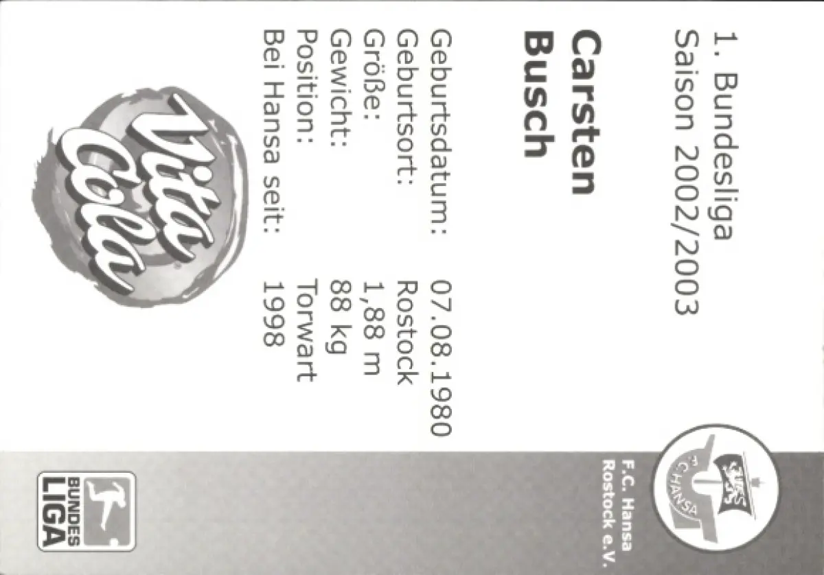 Autogrammkarte Fußballer Carsten Busch, FC Hansa Rostock, Autogramm