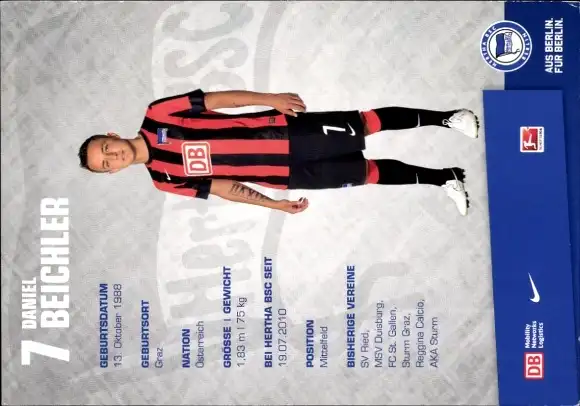 Autogrammkarte Fußballer Daniel Beichler, Hertha BSC, Autogramm