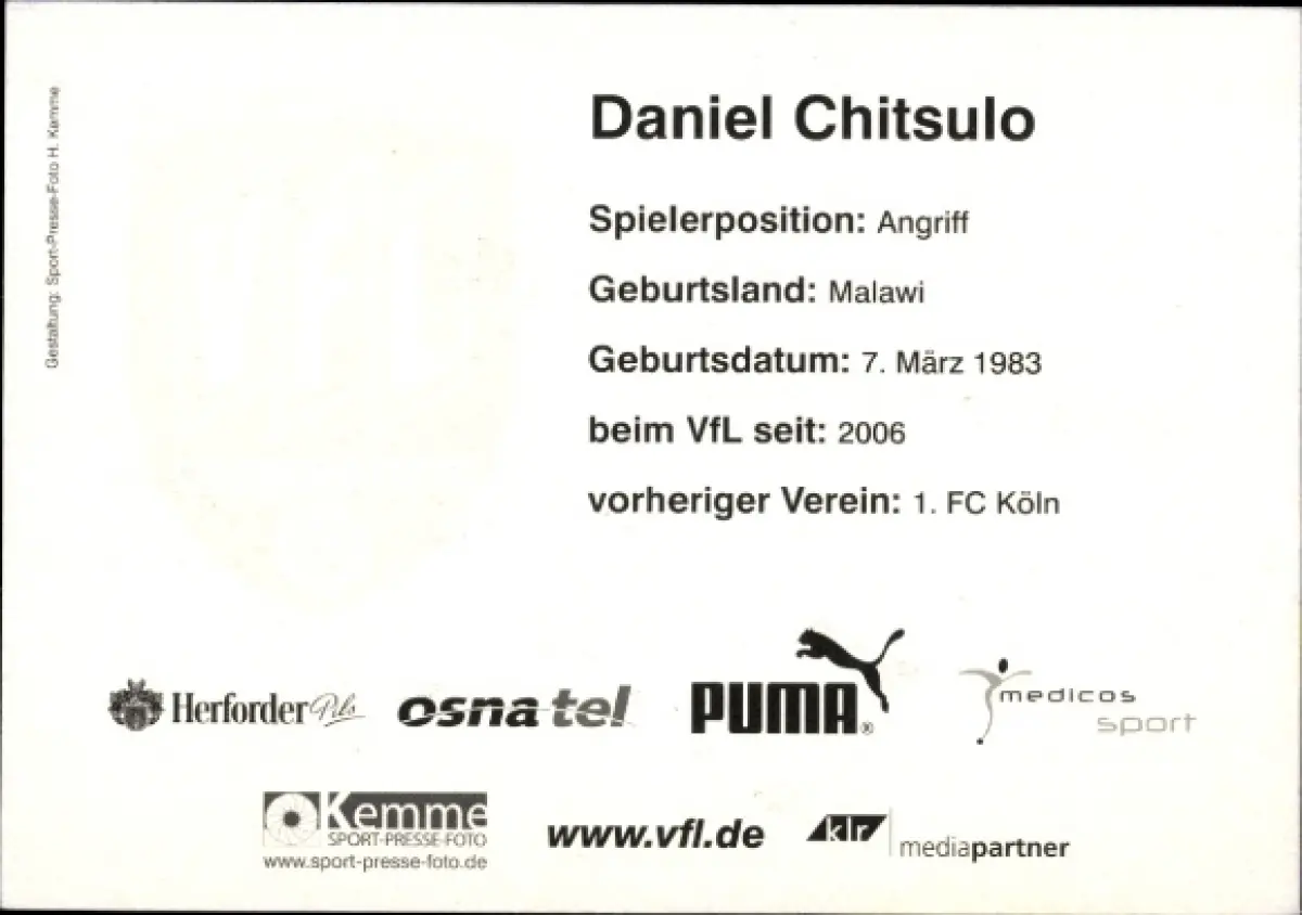 Autogrammkarte Fußballer Daniel Chitsulo, VFL Osnabrück, Autogramm