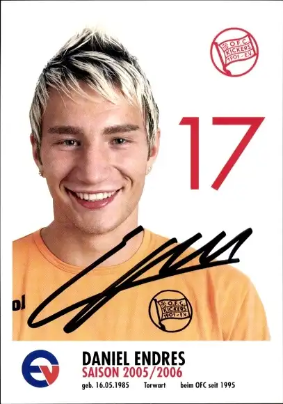 Autogrammkarte Fußballer Daniel Endres, Kickers Offenbach, Autogramm