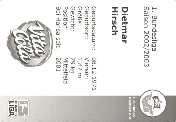 Autogrammkarte Fußballer Dietmar Hirsch, FC Hansa Rostock, Autogramm