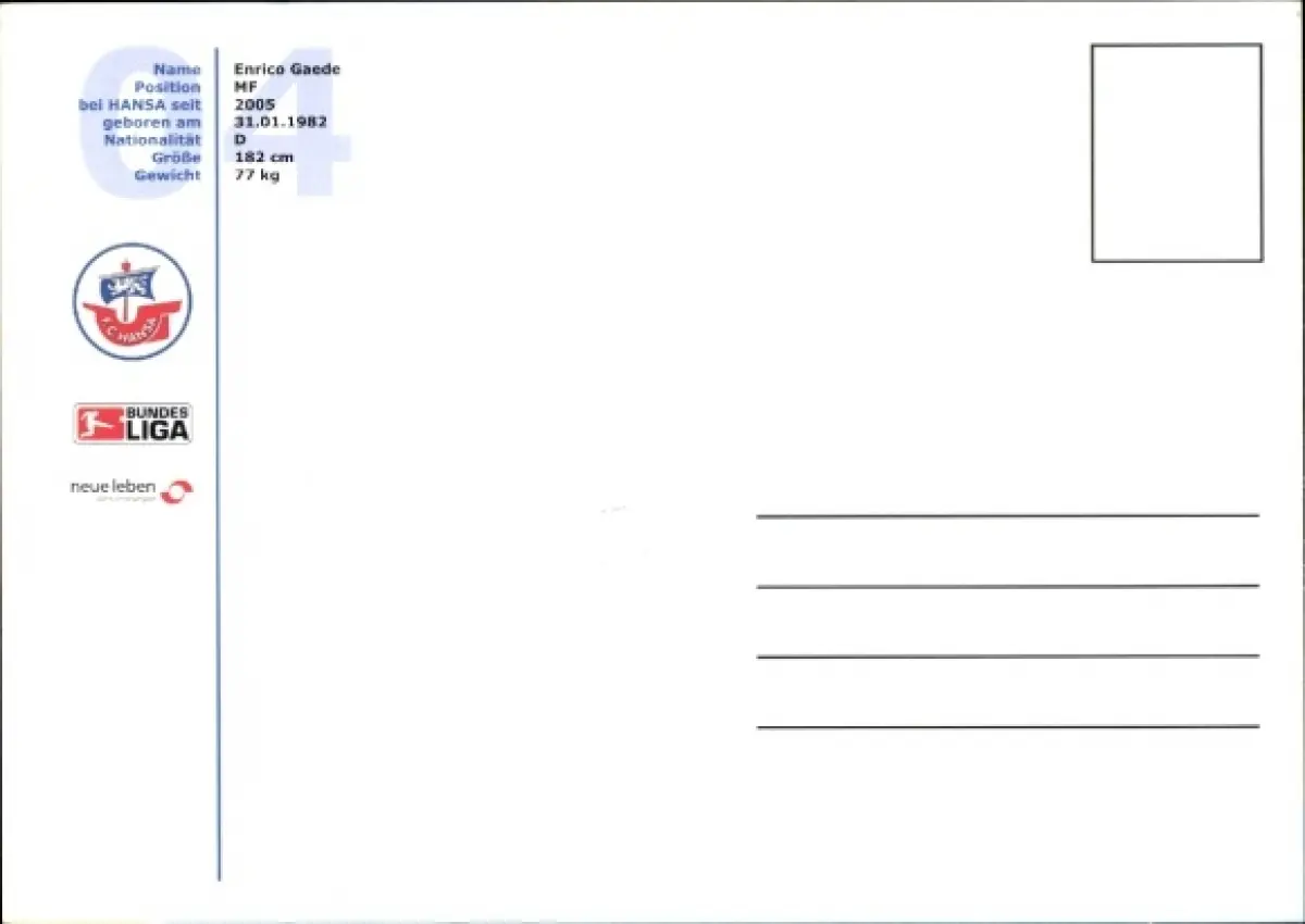 Autogrammkarte Fußballer Enrico Gaede, FC Hansa Rostock, Autogramm