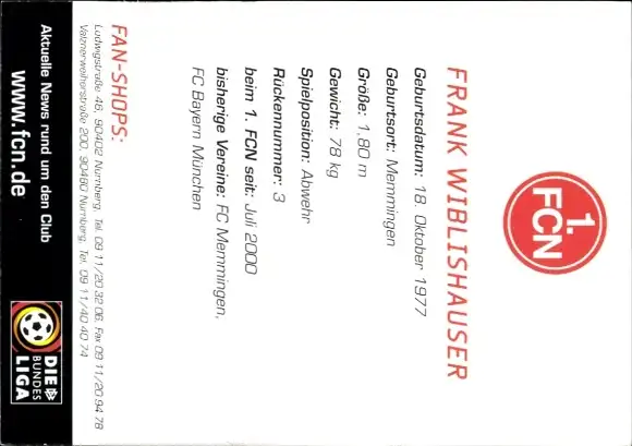 Autogrammkarte Fußballer Frank Wiblishauser, 1. FC Nürnberg, Autogramm