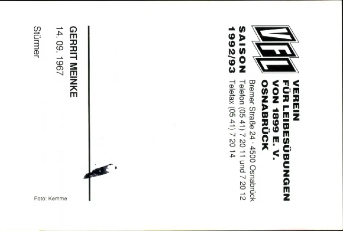 Autogrammkarte Fußballer Gerrit Meinke, VFL Osnabrück, Autogramm