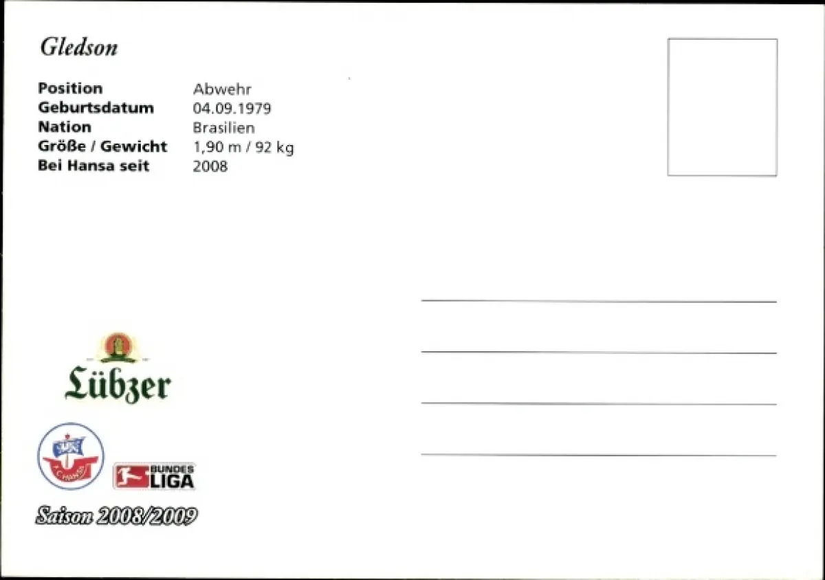 Autogrammkarte Fußballer Gledson, FC Hansa Rostock, Autogramm
