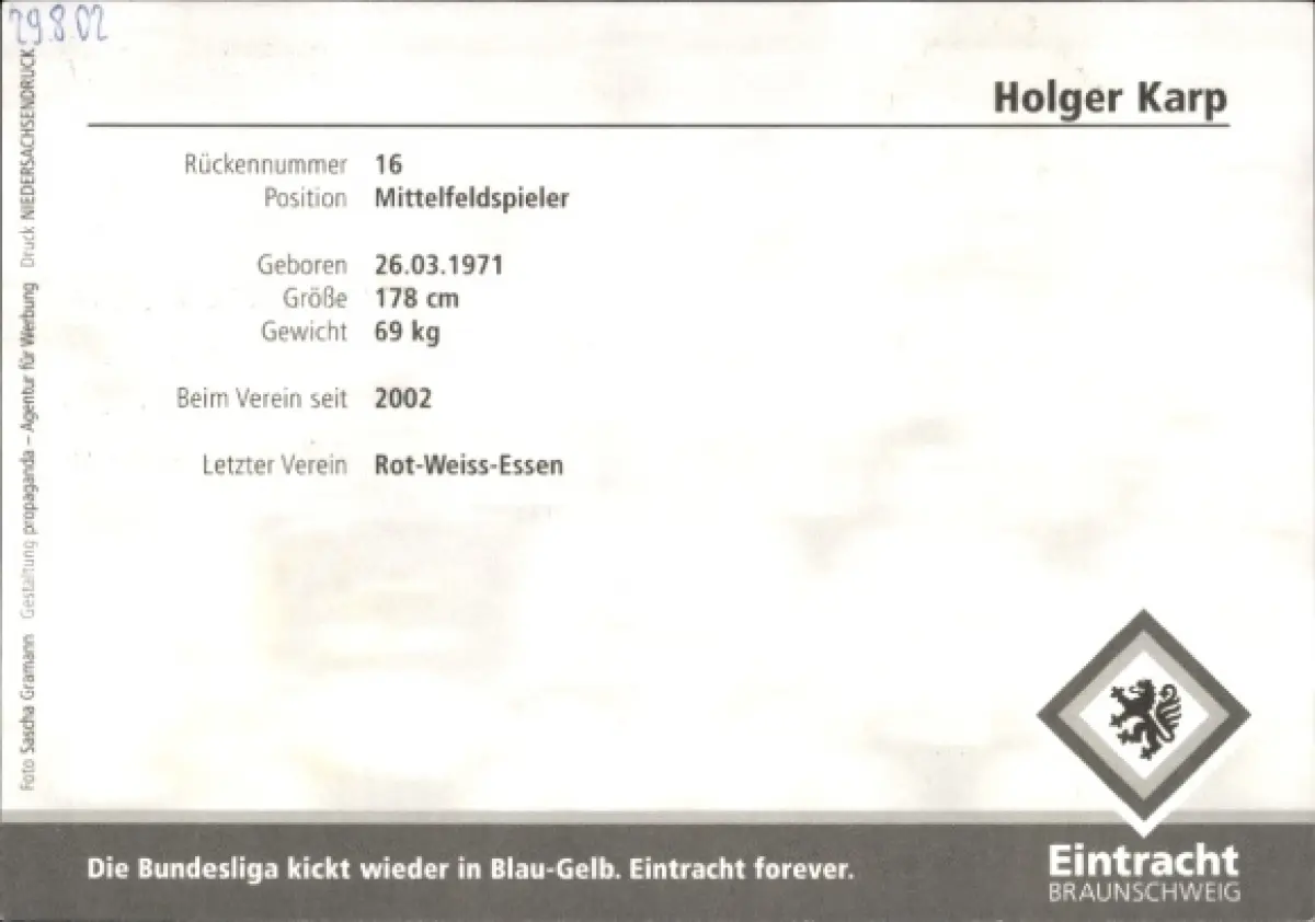 Autogrammkarte Fußballer Holger Karp, Eintracht Braunschweig, Autogramm