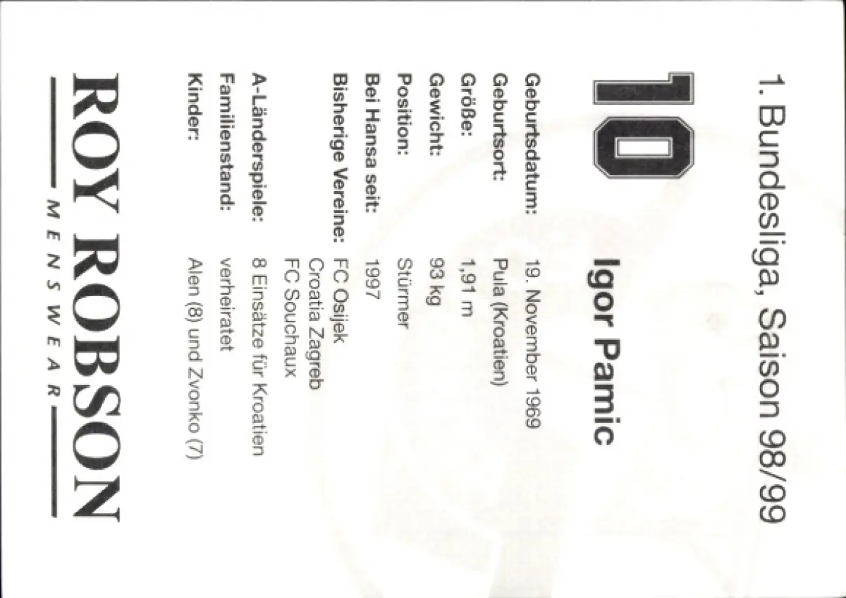 Autogrammkarte Fußballer Igor Pamic, FC Hansa Rostock, Autogramm