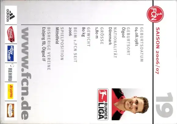 Autogrammkarte Fußballer Jan Kristiansen, 1. FC Nürnberg, Autogramm