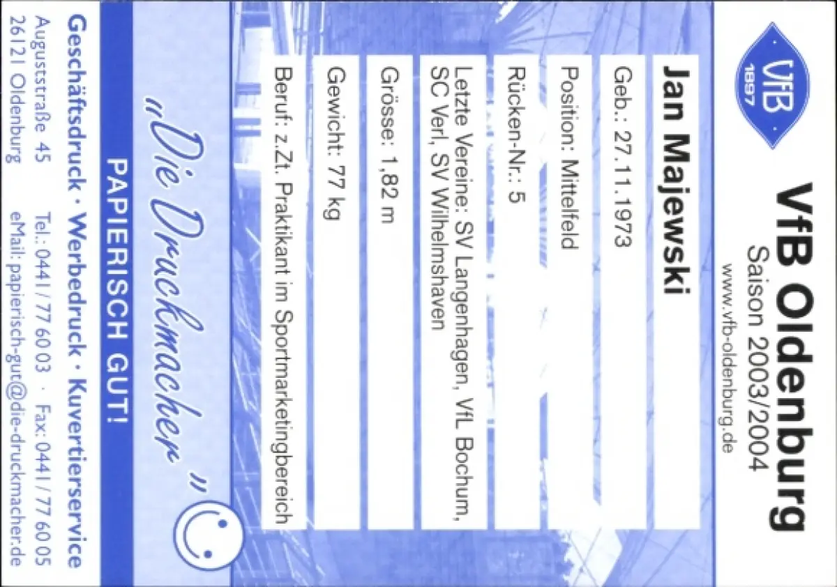 Autogrammkarte Fußballer Jan Majewski, VFB Oldenburg, Autogramm