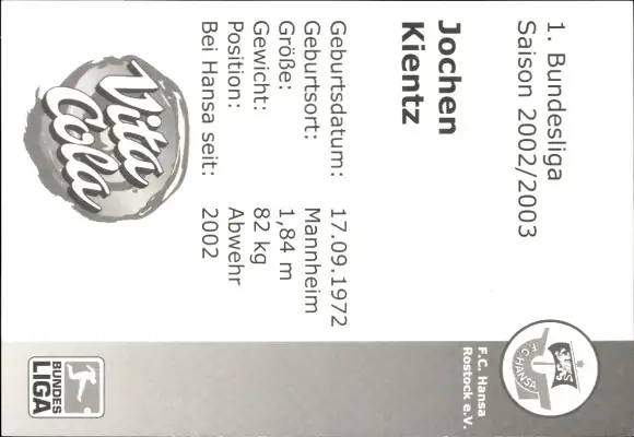 Autogrammkarte Fußballer Jochen Kientz, FC Hansa Rostock, Autogramm
