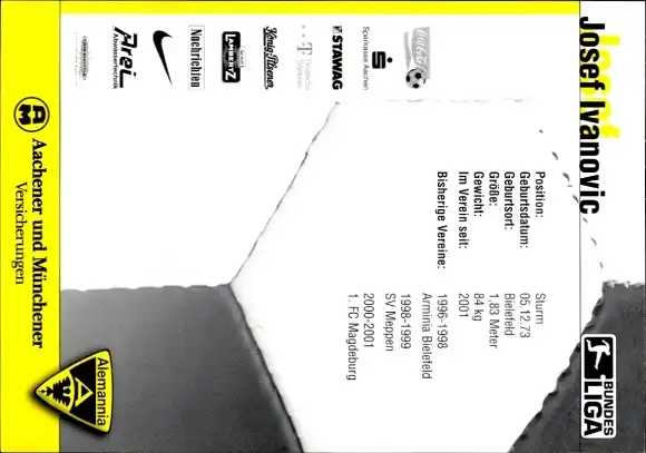 Autogrammkarte Fußballer Josef Ivanovic, Alemannia Aachen, Autogramm