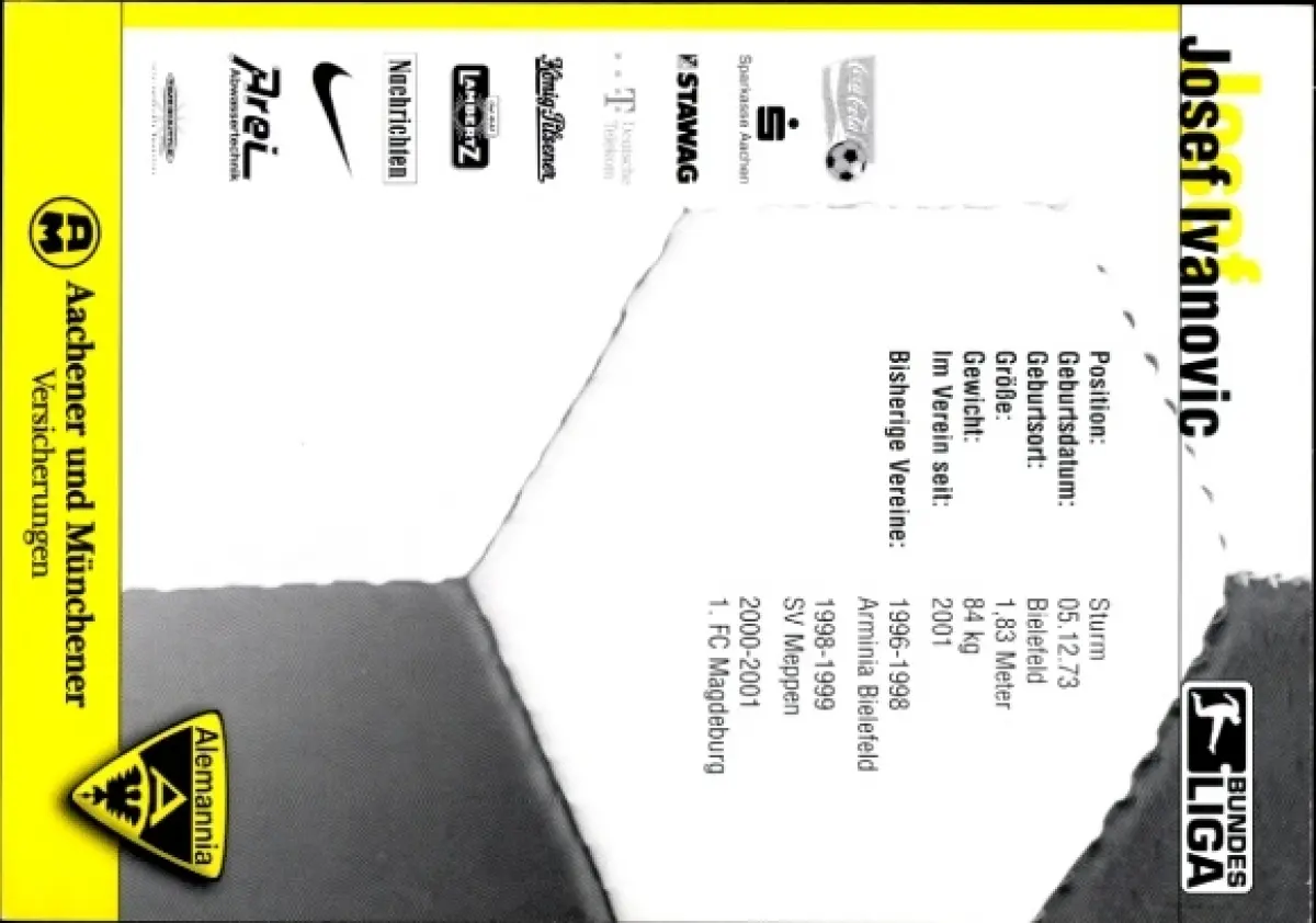 Autogrammkarte Fußballer Josef Ivanovic, Alemannia Aachen, Autogramm