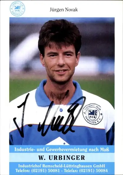 Autogrammkarte Fußballer Jürgen Novak, FC Remscheid, Autogramm