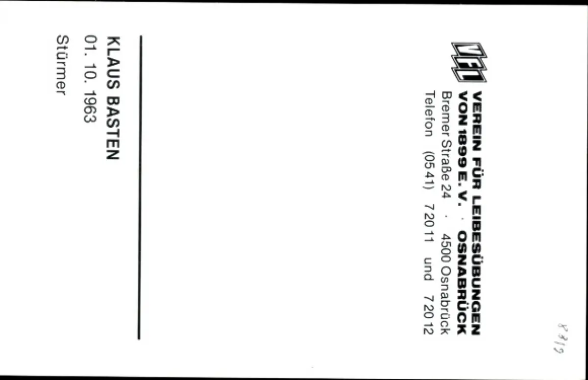Autogrammkarte Fußballer Klaus Basten, VFL Osnabrück, Autogramm