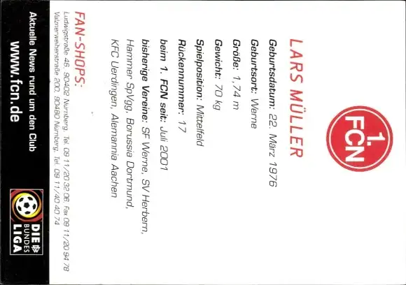 Autogrammkarte Fußballer Lars Müller, 1. FC Nürnberg, Autogramm