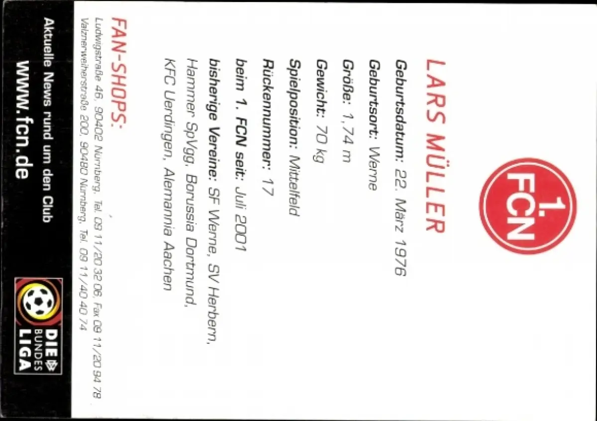 Autogrammkarte Fußballer Lars Müller, 1. FC Nürnberg, Autogramm