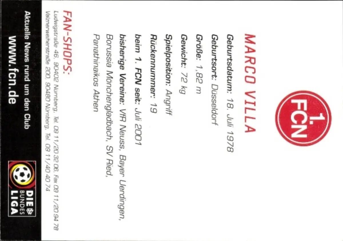 Autogrammkarte Fußballer Marco Villa, 1. FC Nürnberg, Autogramm