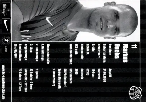 Autogrammkarte Fußballer Markus Fuchs, 1. FC Saarbrücken, Autogramm