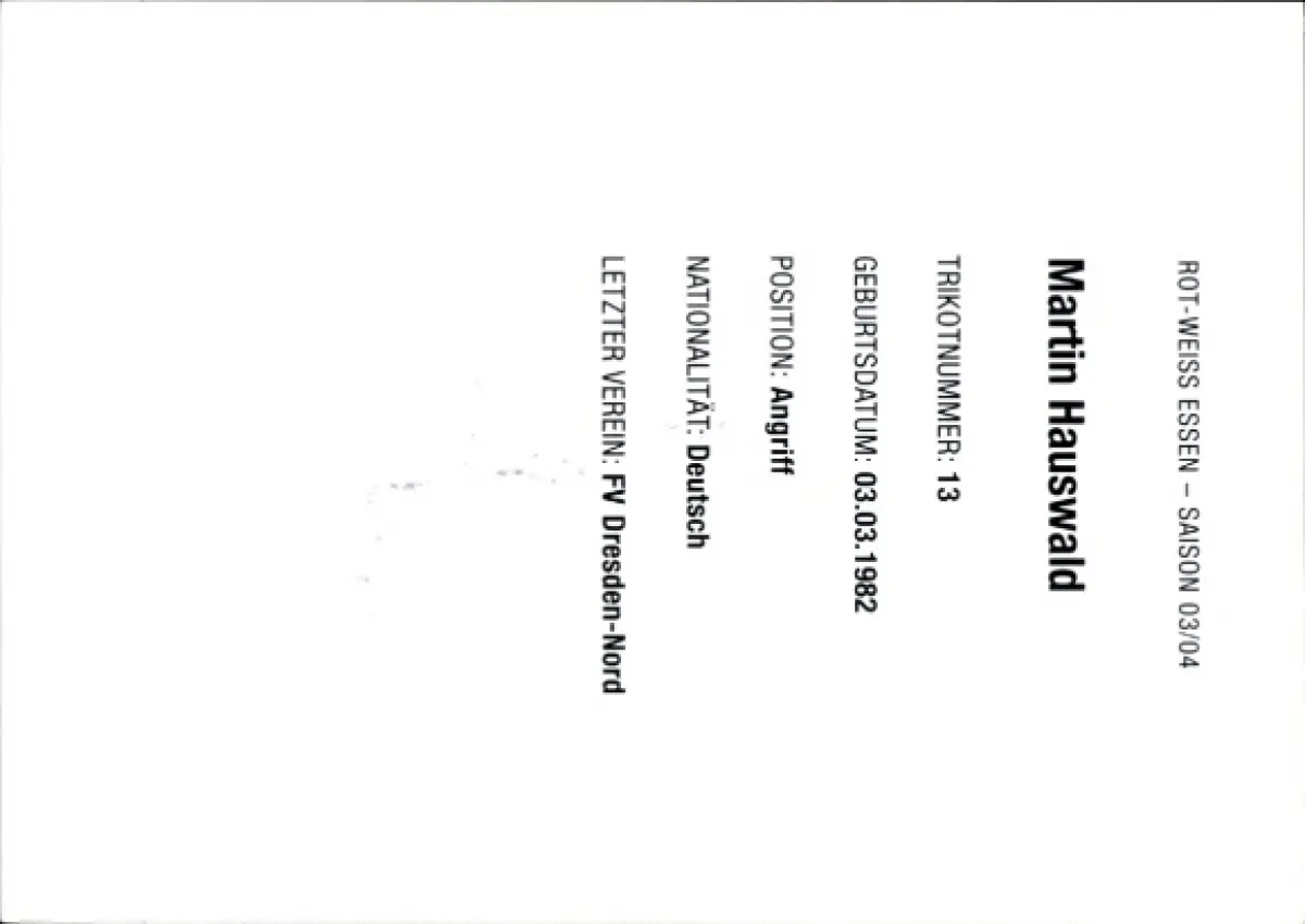 Autogrammkarte Fußballer Martin Hauswald, Rot Weiss Essen, Autogramm