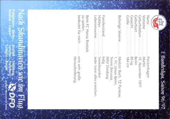Autogrammkarte Fußballer Martin Pieckenhagen, FC Hansa Rostock, Autogramm