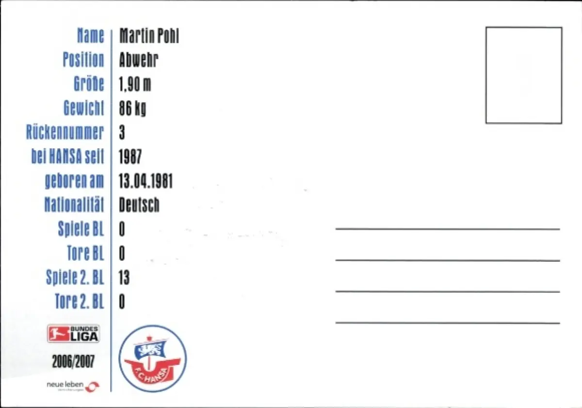 Autogrammkarte Fußballer Martin Pohl, FC Hansa Rostock, Autogramm